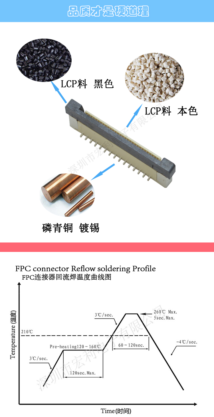 本公司一直以穩定可靠的產品質量與良好的經營信譽,取得了廣大客戶的信任.本公司所有的精密連接器產品均通過SGS環保測試.本公司主要產品有:0.3mm、 0.5mm 、0.8mm、1.0mm 、1.25mm、 1.5mm 、2.0MM、2.5mm、3.5mm間距連接器,(FPC排插),板對板 0.5mm 、0.8mm 間距連接器,共四十余種產品,上千種孔位,產品質量無飛邊,無毛刺,全部新料注塑,符合歐盟環保,孔位齊全,尺寸穩定,容易搭配,產品價格合理,如貴司有需要,可以隨時聯系我們,真誠希望能和貴司有合作的機會.產品廣泛用于:平板電腦、數碼相機、手機、讀卡機、打印機、功放音響、液晶電視、汽車音響、車載系統等領域及電腦周邊設備。