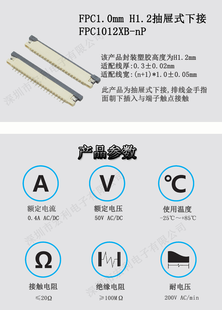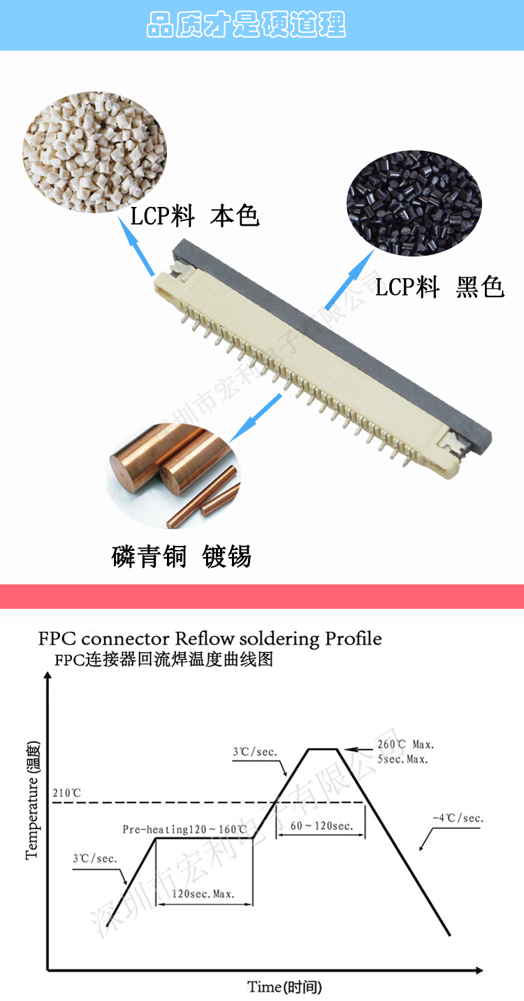 本公司一直以穩定可靠的產品質量與良好的經營信譽,取得了廣大客戶的信任.本公司所有的精密連接器產品均通過SGS環保測試.本公司主要產品有:0.3mm、 0.5mm 、0.8mm、1.0mm 、1.25mm、 1.5mm 、2.0MM、2.5mm、3.5mm間距連接器,(FPC排插),板對板 0.5mm 、0.8mm 間距連接器,共四十余種產品,上千種孔位,產品質量無飛邊,無毛刺,全部新料注塑,符合歐盟環保,孔位齊全,尺寸穩定,容易搭配,產品價格合理,如貴司有需要,可以隨時聯系我們,真誠希望能和貴司有合作的機會.產品廣泛用于:平板電腦、數碼相機、手機、讀卡機、打印機、功放音響、液晶電視、汽車音響、車載系統等領域及電腦周邊設備。