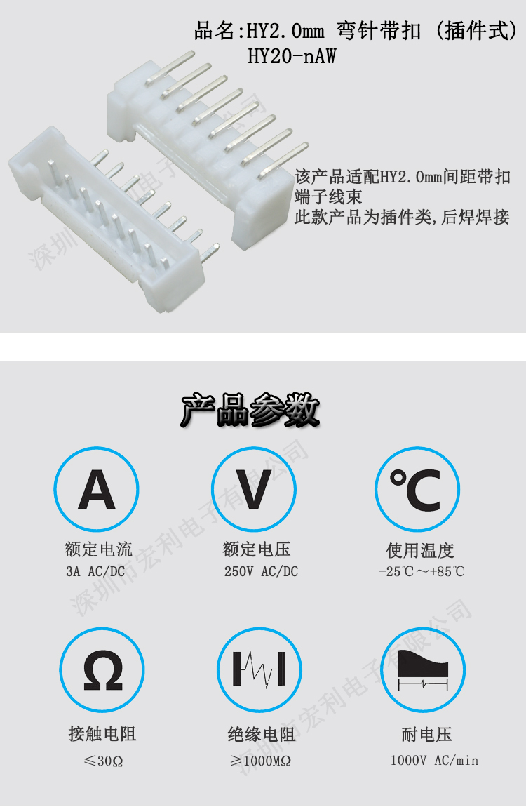 HY2.0Pitch 臥貼帶扣